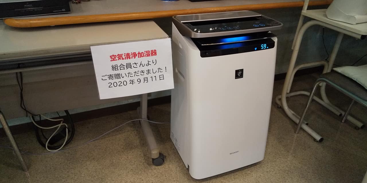 本日、組合員さんより、加湿付空気清浄器をご寄贈いただきした。最新のいい機械です。診療所の、待合室に設置させて頂きました。ありがとうございます。