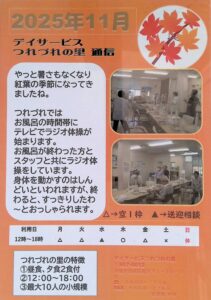投稿日: 2025年12月1日2025年12月1日デイサービスつれづれの里通信 つれづれの里通信 デイサービスつれづれの里 〒 557-0012 大阪市西成区聖天下 1-10-2 ℡ 06-6658-7733 FAX 06-6658-2769