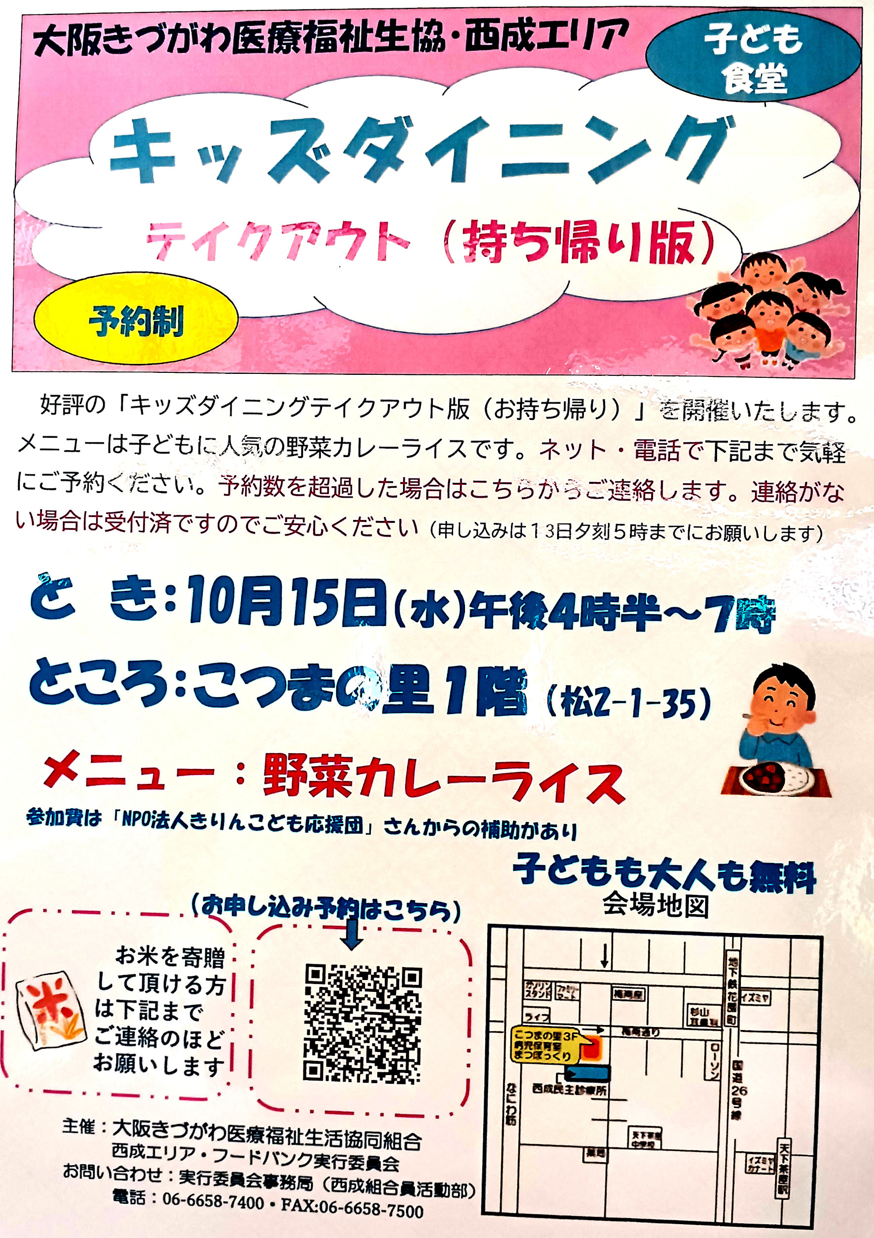 献立は、栄養満点、美味しい特製野菜カレーです。皆さん取りに来てね!