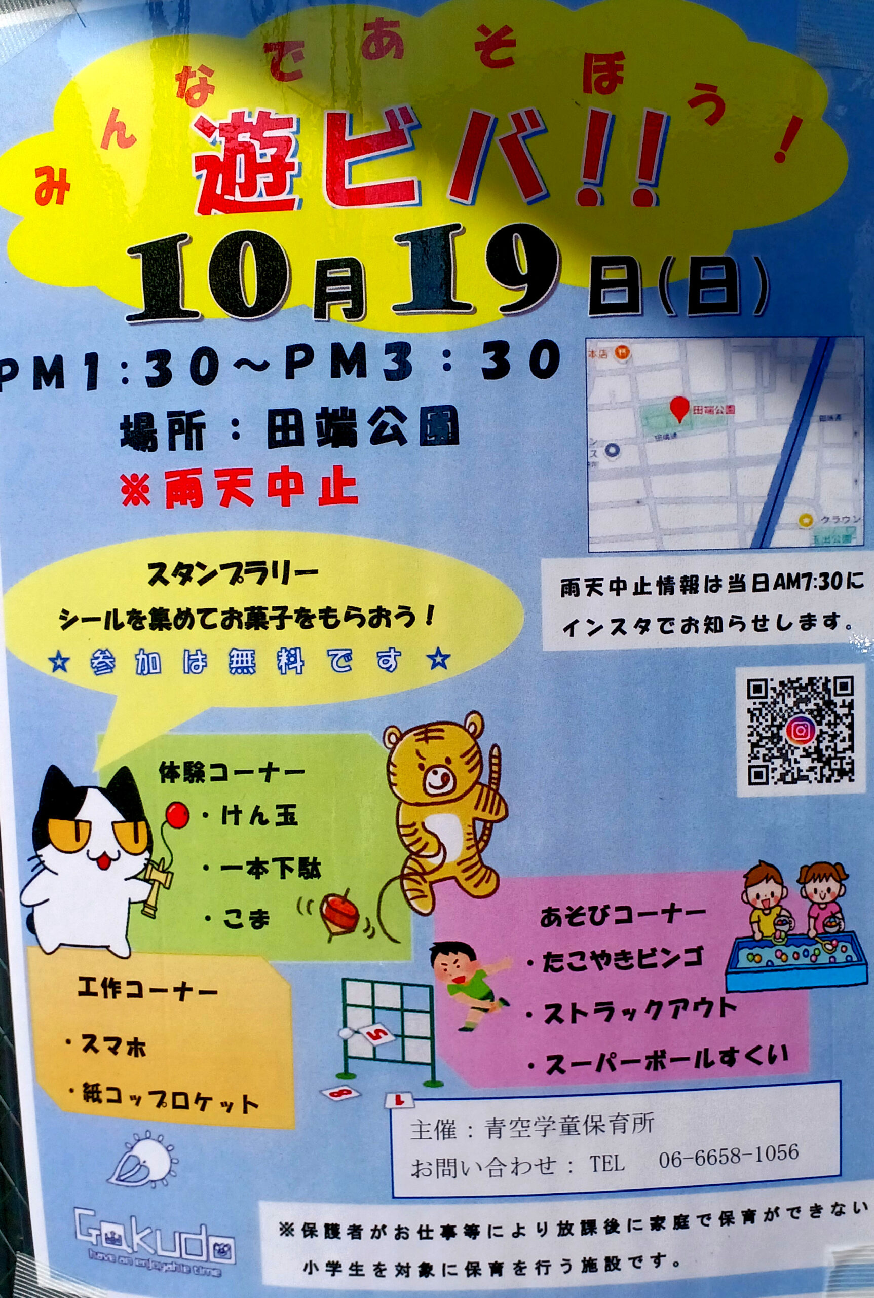日時:10月19日 午後1時半から3時半 場所:田端公園 主催:青空学童保育